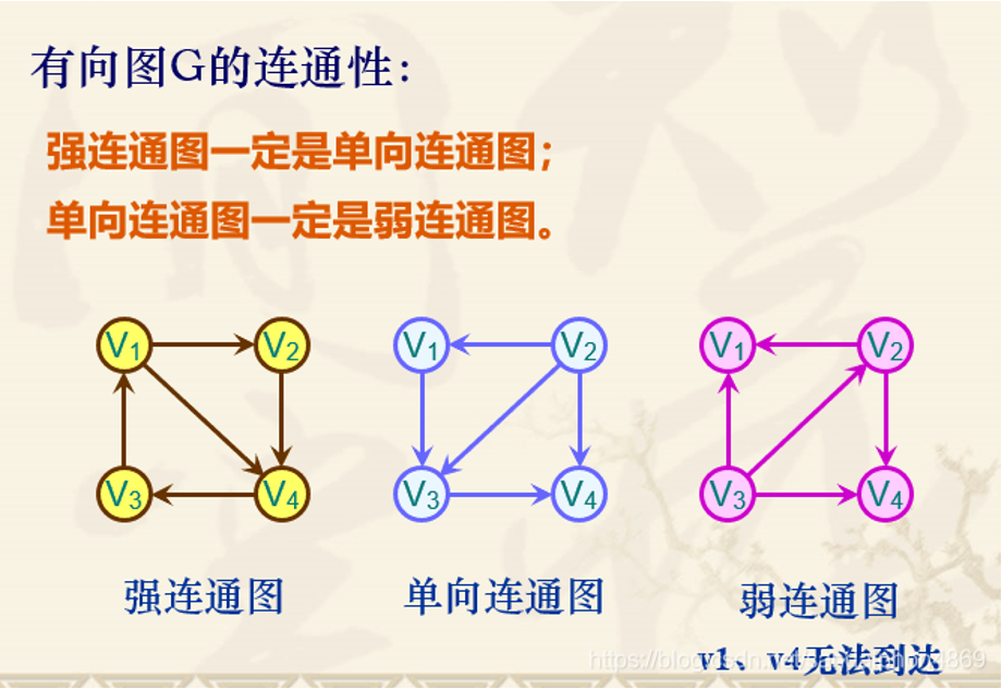 单向连通:有向图中,任意结点对中,至少从一个到另一个是可达的,就是单向连通。