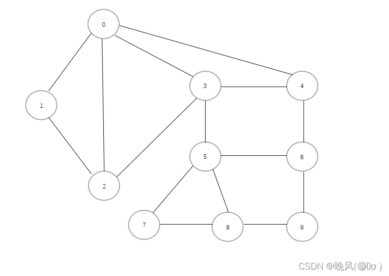 深度优先遍历(从小到大):0,1,2,3,4,6,5,7,8,9。
