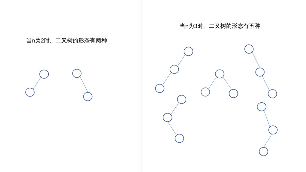 具有n个结点的二叉树,会有多少种不同的形态呢?